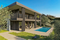 Il piano terra è composto da due camere da letto, entrambe con bagno en suite, oltre a un ulteriore bagno separato. Da questo livello si accede direttamente alla terrazza con giardino e piscina privata, creando una perfetta continuità tra spazi interni ed esterni.