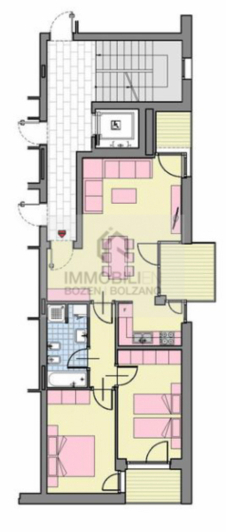 Vendesi bellissimo trilocale nel centro di Laives. L'appartamento si trova al terzo piano di un edifico che ha la classe energetica “A” e ha una superficie di circa 86,25 mq. L’appartamento è composto da ingresso, soggiorno con cucinino, due camere da letto, un bagno e 3 piccoli balconi. La cantina è inclusa nel prezzo. Garage disponibile extra.
