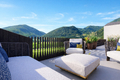La zona giorno open space con cucina integrata ha accesso diretto alla terrazza, creando una continuità naturale tra interno ed esterno. Anche due camere da letto sono orientate verso la terrazza e beneficiano di luce e panorama.