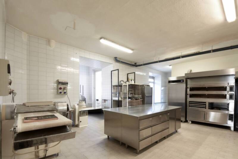 I restanti livelli ospitano locali produttivi attrezzati per pasticceria e panificazione, celle frigorifere, locali accessori, magazzini e archivi, nonché uffici e spazi per il personale dotati di spogliatoi e servizi igienici, tutti integrati nellorganizzazione operativa del complesso.