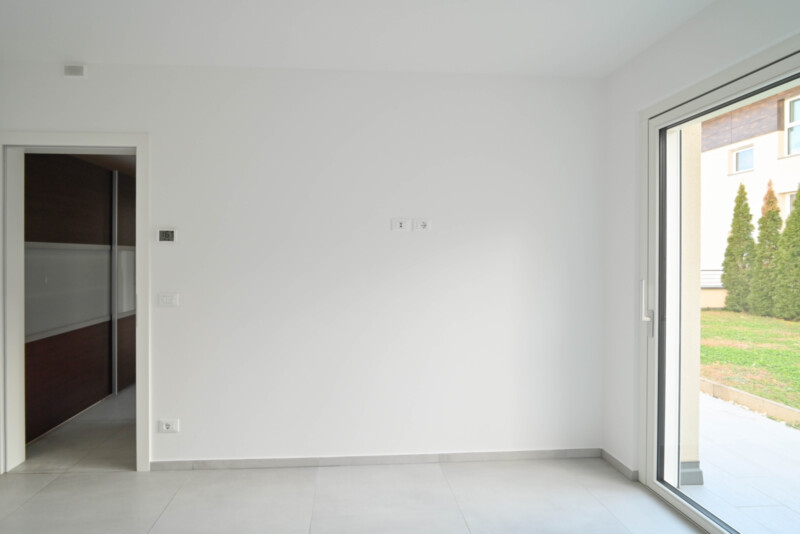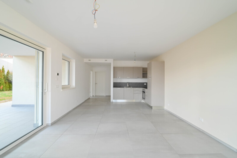 L’appartamento offre una disposizione ben studiata, composta da un accogliente ingresso, un ampio soggiorno con cucina a vista e accesso alla soleggiata terrazza esposta a sud-ovest, due comode camere da letto, un moderno bagno e un pratico corridoio. Il giardino adiacente, facilmente accessibile, garantisce ulteriore spazio all’aperto e totale privacy.
