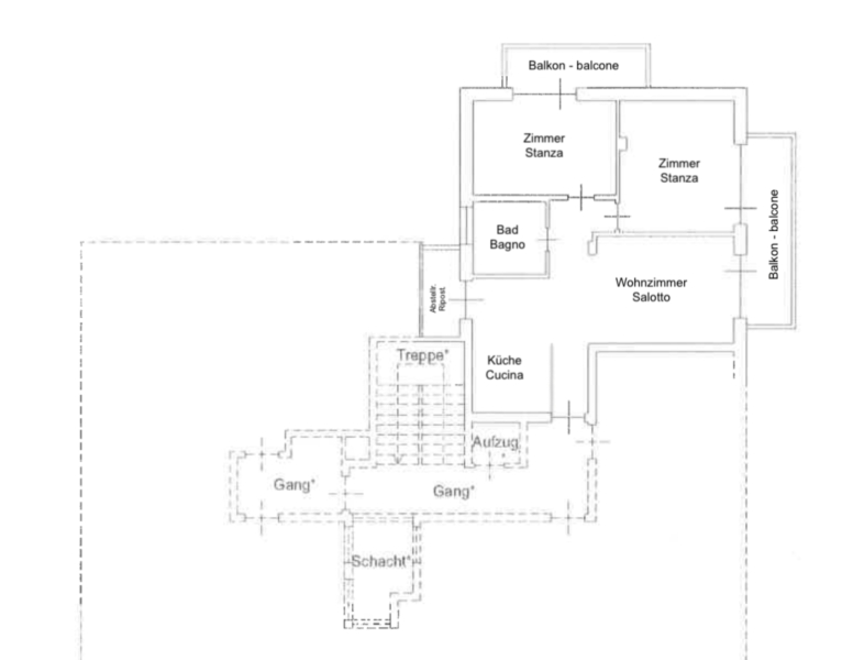 L'appartamento è orientato a sud-est e colpisce per i suoi ambienti luminosi e il layout ben studiato: il soggiorno con zona pranzo e accesso al balcone soleggiato invita al relax. La cucina moderna può essere separata elegantemente con porte scorrevoli in vetro. Un piccolo ripostiglio offre spazio aggiuntivo.