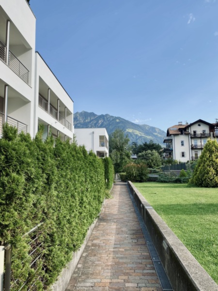 ZONA RESIDENZIALE MOLTO ESCLUSIVA (accesso solo per confinanti), CALMA E SOLEGGIATA CON VISTA PANORAMICA situato a Merano / Maia Alta nel Clima Residence Helianthus, via Leichter nr. 3. Si tratta di uno degli edifici casa clima A più innovativi della città, con fotovoltaico e geotermia il tutto SENZA combustibili fossili