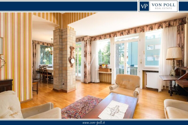 Questo elegante ed ampio pentalocale si trova in un contesto residenziale molto elegante e signorile. La disposizione interna prevede un comodo ingresso, un salone doppio con zona living e pranzo con accesso alla terrazza da 30 mq. ca., una cucina abitabile, tre camere da letto matrimoniali, una camera singola, un bagno padronale finestrato, un bagno di servizio e un ripostiglio. L'unità è dotata di riscaldamento centralizzato (teleriscaldamento). L'edificio beneficia di un curato giardino condominiale. Soluzione ideale per chi cerca spazi ampi, comfort e riservatezza, in un ambiente elegante e tranquillo. Questa proprietà esclusiva è completata da due posti auto scoperti e due cantine.