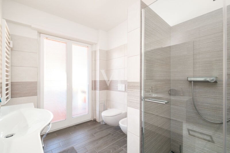 In elegante contesto signorile, proponiamo in vendita questo meraviglioso appartamento di ampia metratura. L'immobile è situato al quinto piano con ascensore ed è esposto su tre lati. La disposizione interna prevede: un comodo ingresso, un generoso soggiorno con sala pranzo e con accesso alla terrazza di 40 mq. ca. con vista panoramica esposta a sud, un ampia cucina abitabile anch'essa con accesso alla terrazza, tre camere da letto tra cui due con balcone a vista panoramica, un bagno di servizio con accesso al balcone, un bagno padronale finestrato con vasca da bagno e doccia e un ripostiglio/lavanderia. L'unità è dotata di riscaldamento centralizzato a radiatori. L'edificio beneficia di un curato giardino condominiale e si trova in una zona residenziale di grande prestigio e ben servita. Soluzione ideale per chi cerca spazi ampi, comfort e riservatezza, in un ambiente elegante e tranquillo. Questa proprietà esclusiva è completata da due garage EXTRA (Euro 30.000 cadauno) e una cantina da 30 mq.