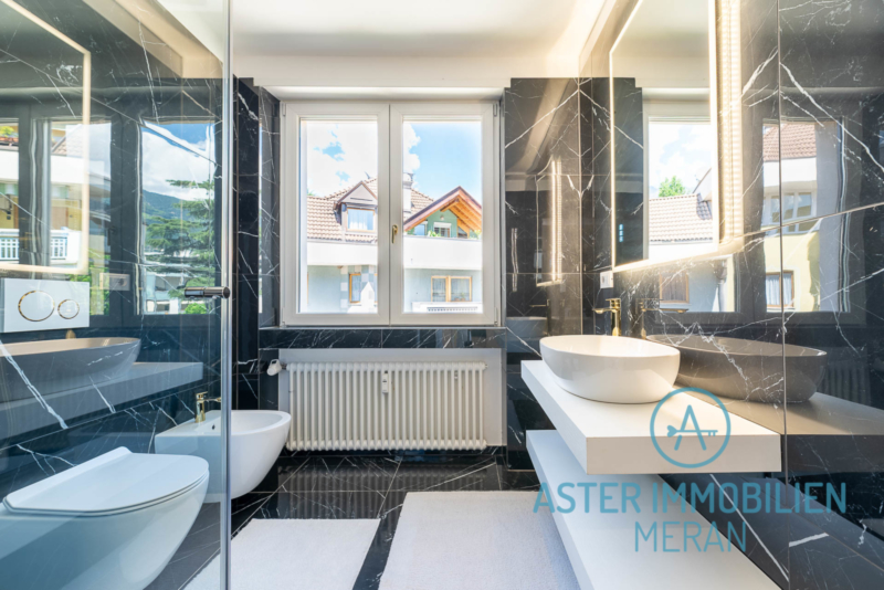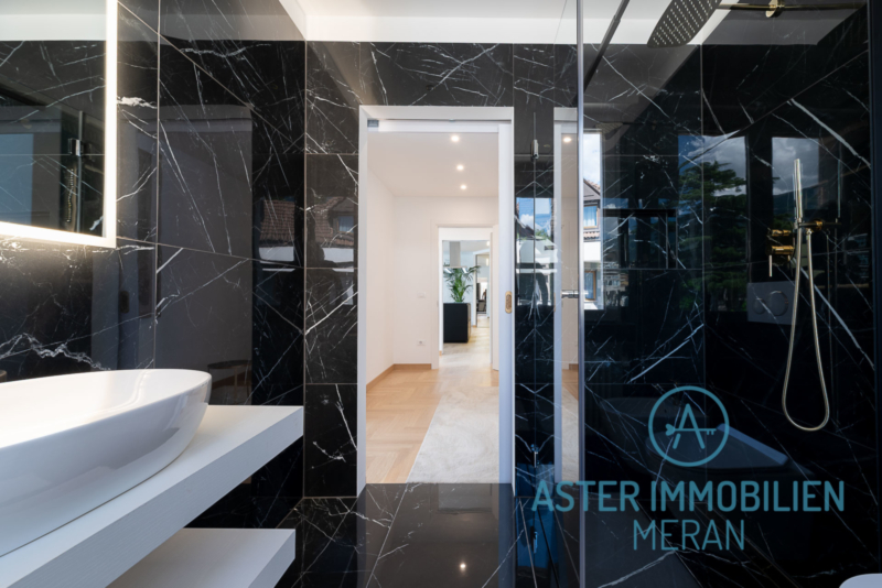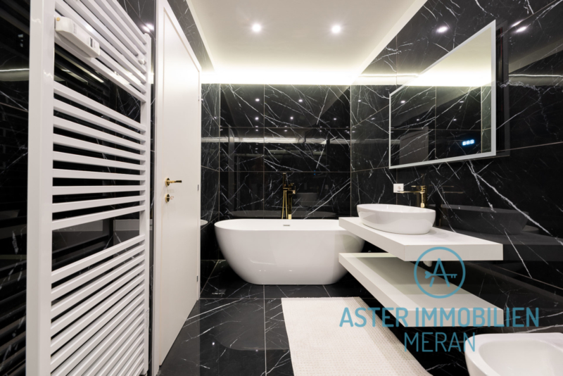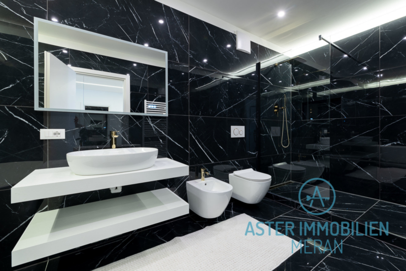 L'appartamento dispone di due camere da letto, di cui una con bagno privato - ideale per ritirarsi e rilassarsi. L'ampio bagno con doccia offre un ulteriore comfort e presenta piastrelle di design di alta qualità.