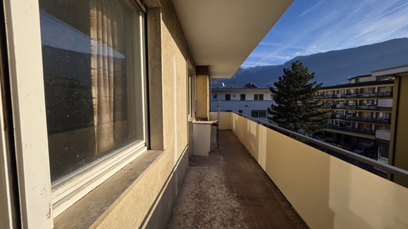 Ampio balcone che si estende su tutto il lato sud dell’appartamento