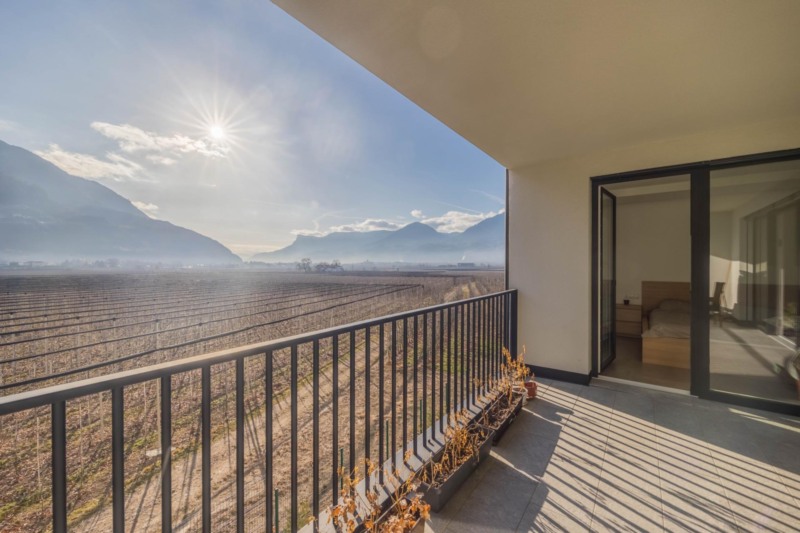 L'appartamento è esposto a sud-est ed è particolarmente luminoso e soleggiato. Le ampie finestre offrono una vista libera e senza ostacoli su vasti frutteti e creano un piacevole collegamento tra interno ed esterno. Una particolarità è la spaziosa terrazza coperta, che offre spazio sufficiente per prendere il sole, rilassarsi e trascorrere il tempo libero e può essere utilizzata in qualsiasi momento della giornata.