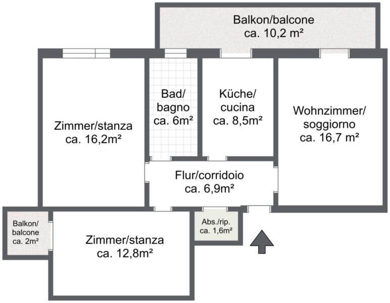 Al 4° e ultimo piano di un condominio ben curato – sopra c'è solo il sottotetto – si apre questo appartamento trilocale, facilmente accessibile grazie a un nuovo ascensore senza barriere. Offre una solida base e ampi spazi da personalizzare.