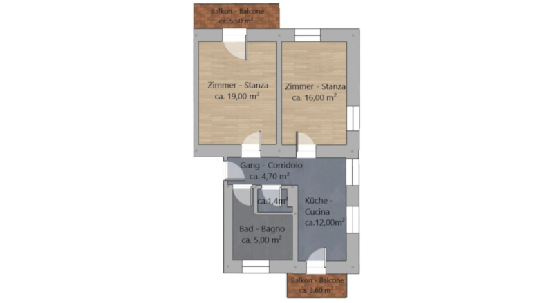 In via Goethe, a pochi passi dall' ospedale di Merano, si trova questo ampio e luminoso bilocale.