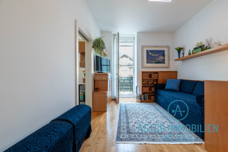 Elegante bilocale al primo piano, comodamente raggiungibile con ascensore. Appartamento completamente arredato e pronto per entrare, superficie netta abitabile: 50 m².