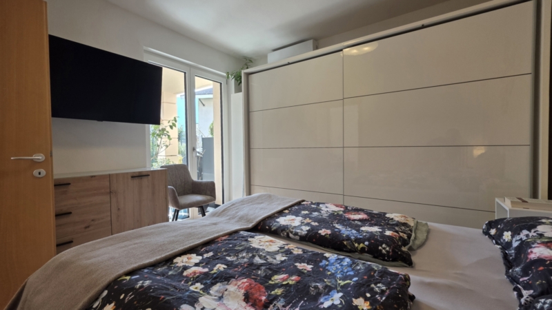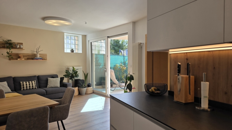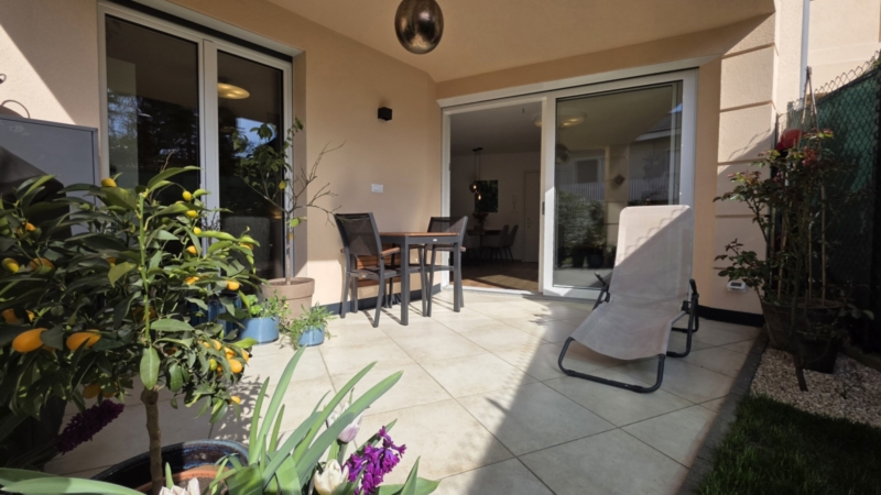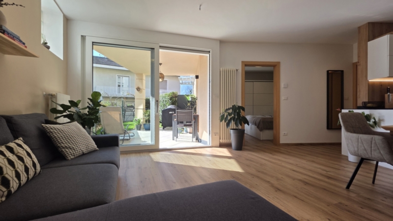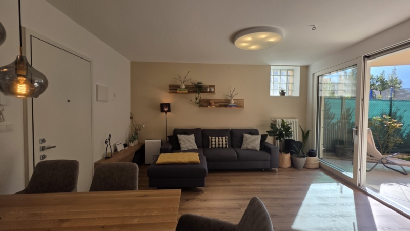 L’unità è stata oggetto di un mirato intervento di ammodernamento e si presenta in condizioni estremamente curate. Finestre con triplo vetro, una nuova porta scorrevole verso il giardino, un nuovo impianto di climatizzazione e un arredo contemporaneo garantiscono un’immagine complessiva armoniosa. La consegna avviene parzialmente arredata.