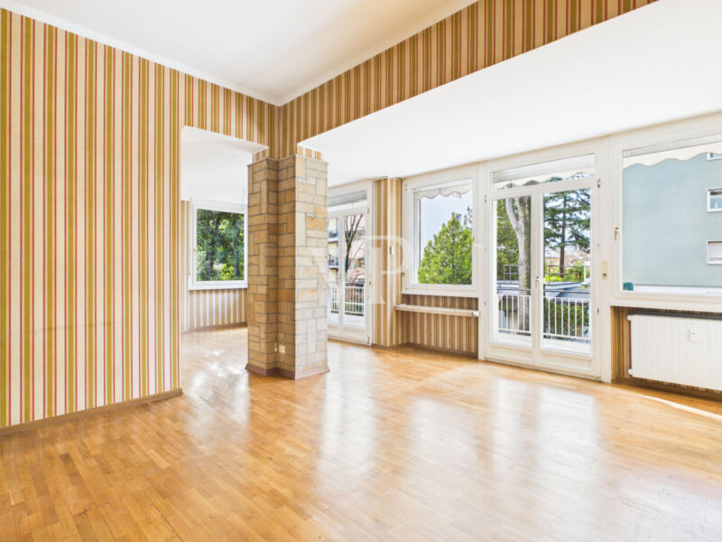 Questo elegante ed ampio pentalocale si trova in un contesto residenziale molto elegante e signorile. La disposizione interna prevede un comodo ingresso, un salone doppio con zona living e pranzo con accesso alla terrazza da 30 mq. ca., una cucina abitabile, tre camere da letto matrimoniali, una camera singola, un bagno padronale finestrato, un bagno di servizio e un ripostiglio. L'unità è dotata di riscaldamento centralizzato (teleriscaldamento). L'edificio beneficia di un curato giardino condominiale. Soluzione ideale per chi cerca spazi ampi, comfort e riservatezza, in un ambiente elegante e tranquillo. Questa proprietà esclusiva è completata da un posto auto scoperto EXTRA (15.000 Euro) e due cantine.