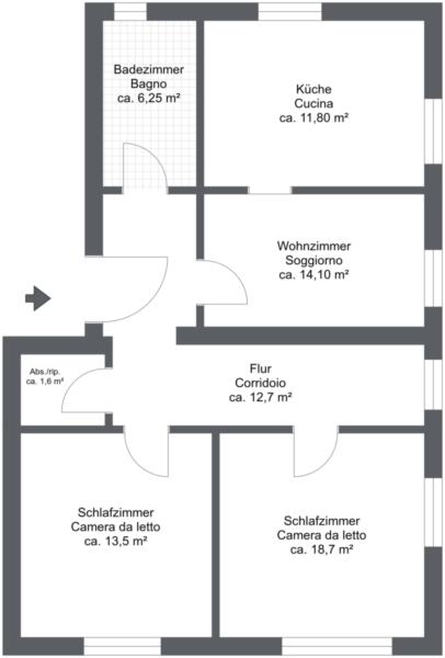 Si vende un accogliente appartamento di 3 locali al quarto e ultimo piano (senza ascensore) di un edificio residenziale a Merano, vicino all'ospedale.