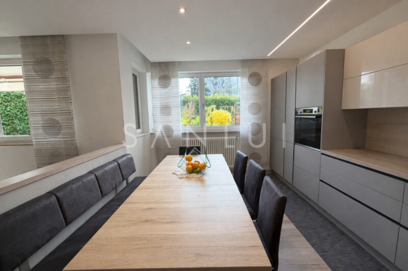 Questo appartamento di 4 locali, curato e ristrutturato con materiali di qualità, situato al piano terra, si distingue per una distribuzione degli spazi ben studiata, ambienti luminosi e uno spazio esterno privato – perfetto per la vita familiare.