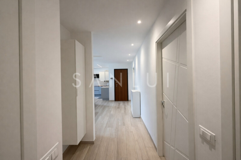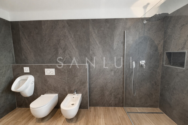 L’appartamento dispone di tre stanze versatili, utilizzabili come camera matrimoniale, camere per bambini o studio. Due bagni assicurano un’elevata funzionalità quotidiana; il bagno principale è dotato di doppio lavabo e orinatoio, offrendo un ulteriore livello di comfort. Completa la proprietà un pratico ripostiglio.