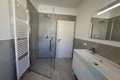 Bagno moderno con grande doccia, finestra per la luce diurna, rubinetteria elegante;
