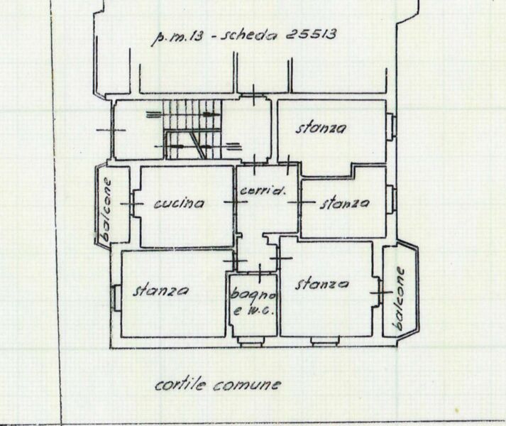 1 entrata, 1 cucina abitabile con balcone, 1 stanza, 1 bagno, 1 soggiorno con balcone, 1 stanza da pranzo, 1 stanza, 1 cantina