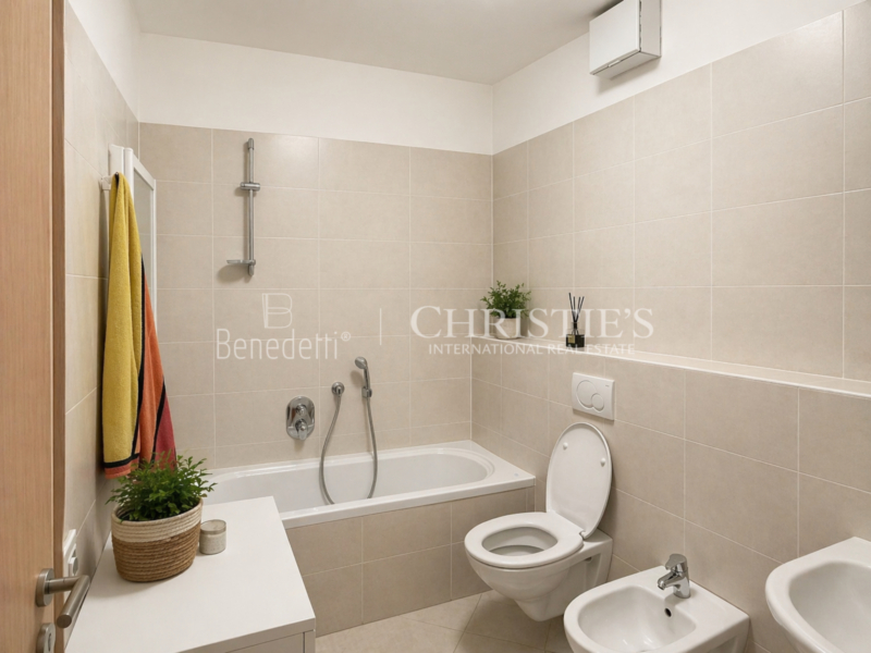 L’appartamento comprende inoltre un bagno e una camera da letto separata, che offre adeguati spazi di privacy.