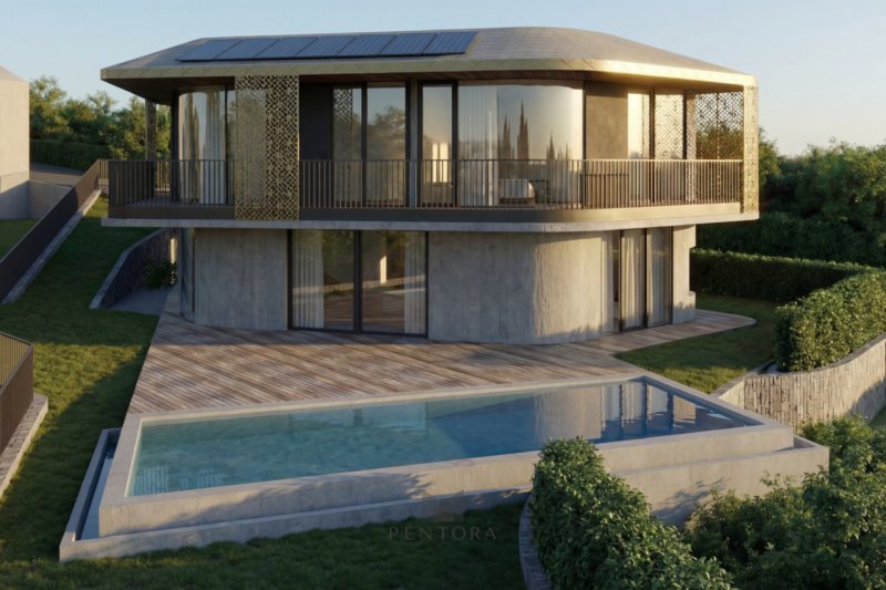 Materiali di alta qualità, linee pulite e un design curato si fondono in un concetto abitativo di lusso. Su più livelli, la villa offre spazio per personalizzazione e comfort: La possibilità di realizzare una piscina valorizza ulteriormente l’esperienza abitativa. Particolarmente degno di nota è il garage di grandi dimensioni, con posto per almeno quattro auto – ideale per appassionati di motori.