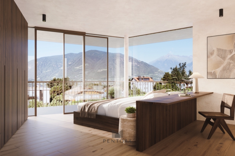 In una posizione privilegiata sotto il Castello Pinzenau a Maia Alta, nasce questa villa unifamiliare di nuova costruzione – un vero e proprio statement architettonico per chi cerca un‘abitazione esclusiva.