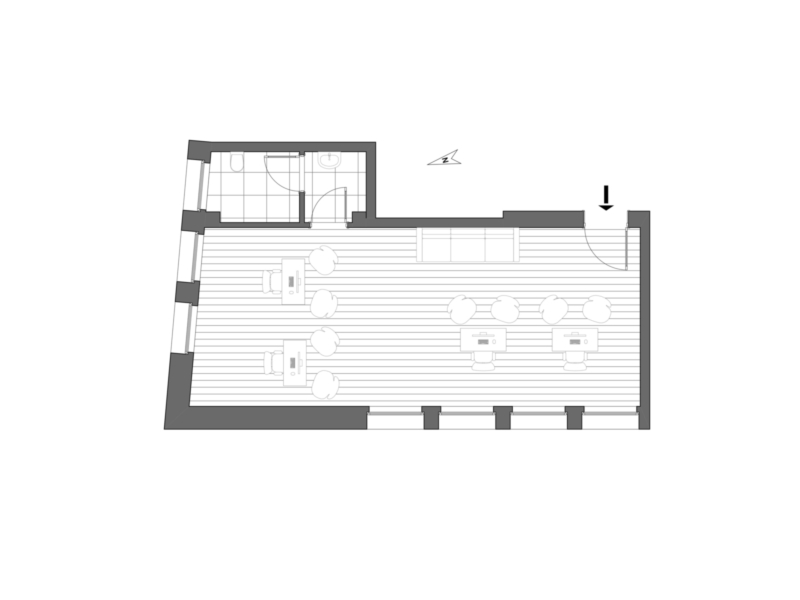 Con una superficie netta di circa 63 m², questo ufficio al terzo piano è suddiviso in un open space, un bagno e un ingresso. L'esposizione a nord-ovest garantisce una piacevole illuminazione naturale, soprattutto nelle ore pomeridiane.