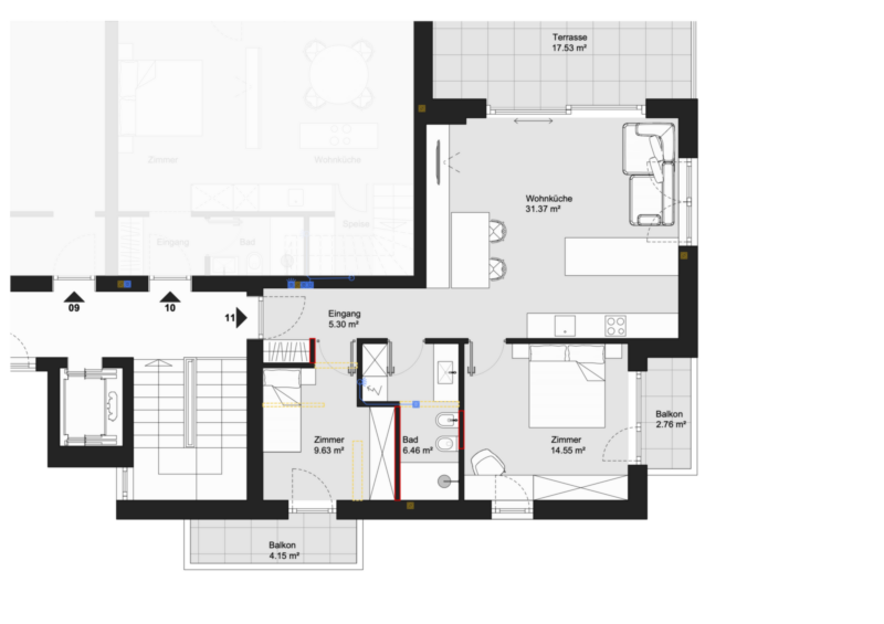 In moderno complesso residenziale viene venduto questo spazioso appartamento con 67 m2 di superficie netta abitabile, bella terrazza panoramica di oltre 17 mq e 2 balconi. Dalla ampia zona giorno si arriva alla terrazza con vista sulla valle. Ogni stanza ha un suo balcone. L'appartamento è personalizzabile internamente - possono essere ancora scelti i rivestimenti dei pavimenti e l'arredamento del bagno. Inoltre appartengono all'unità abitativa una cantina e un posto auto scoperto. Eventualmente sono in vendita garage e posti auto di diverse dimensioni.