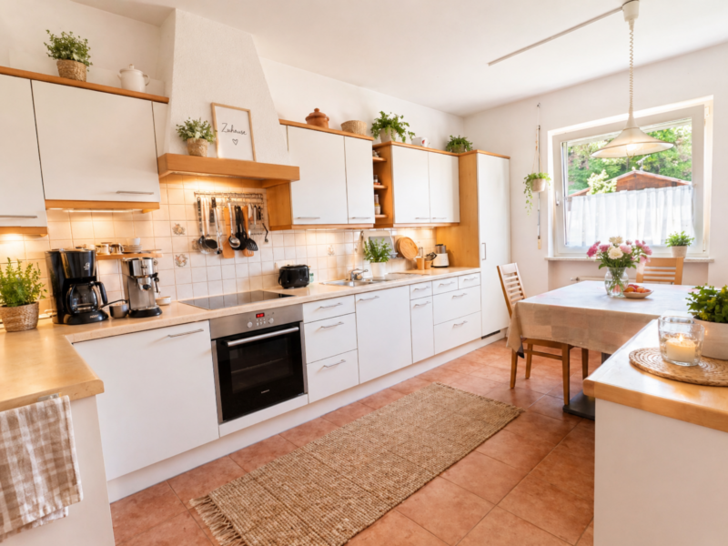 La cucina componibile con elettrodomestici, inclusa nel prezzo, completa l’offerta.