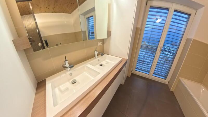 L’appartamento si sviluppa su due livelli e colpisce per il suo concetto abitativo versatile: cucina, zona pranzo e soggiorno sono collegati da eleganti porte scorrevoli, che permettono di creare un ambiente open space oppure tre stanze separate – secondo le vostre esigenze e il vostro stile di vita.