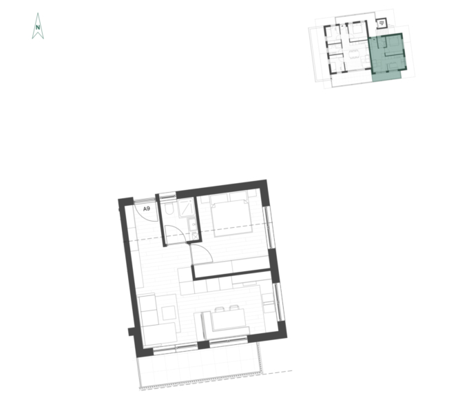 Questo spazioso appartamento all'ultimo piano è composto da una cucina abitabile, una camera da letto, un bagno, un balcone esposto a sud e una cantina. È possibile acquistare un posto auto a pagamento.