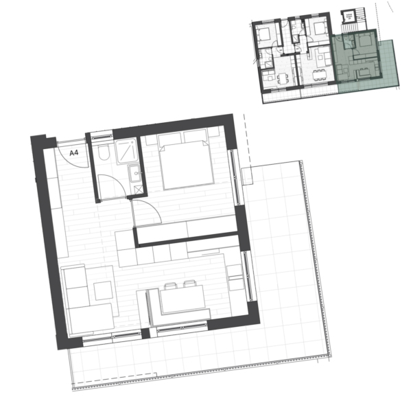 Questo spazioso bilocale si trova al piano terra di un condominio ed è composto da una cucina-soggiorno, una camera da letto, un bagno, un balcone e una cantina. È possibile acquistare un posto auto a pagamento.