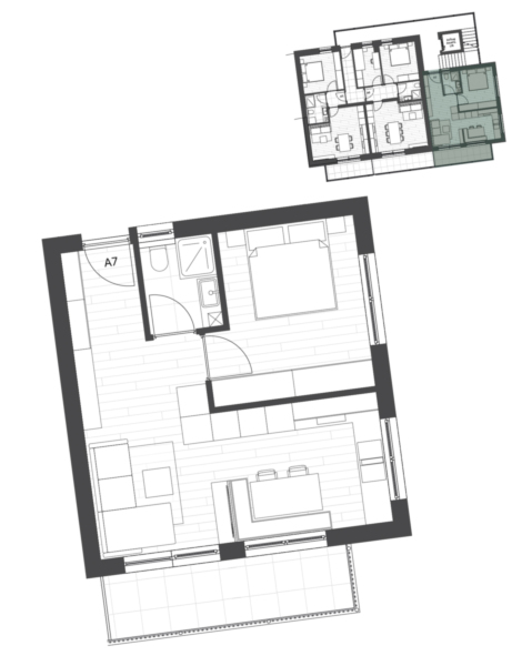 Questo bilocale si trova al primo piano di un condominio ed è composto da una cucina-soggiorno, una camera da letto, un bagno, un balcone esposto a sud e una cantina. È possibile acquistare un posto auto a pagamento.