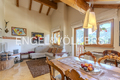 Il cuore della proprietà è l’ampia zona living con sala da pranzo e cucina moderna, dotata di elettrodomestici Miele di alta qualità. Una stufa crea un’atmosfera accogliente e calda durante le giornate invernali. Dal soggiorno e da una delle tre camere da letto si accede al grande balcone, che regala una splendida vista aperta sul paesaggio collinare circostante.