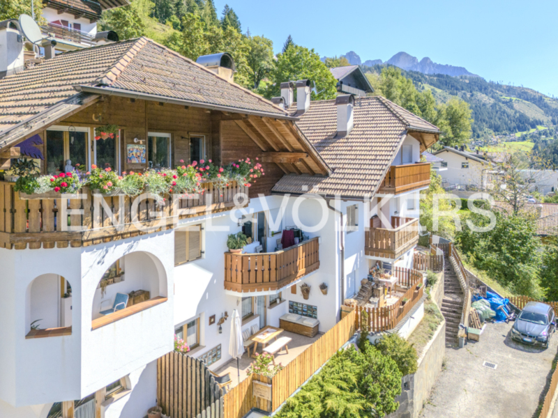 Il paese di Nova Levante (1.182 m s.l.m.) è incorniciato dalle maestose catene montuose del Latemar e del Catinaccio, uno scenario che affascina in ogni stagione. L’immobile si trova in una tranquilla zona residenziale ai margini del paese e, grazie al suo orientamento, offre una vista libera sul dolce paesaggio collinare.