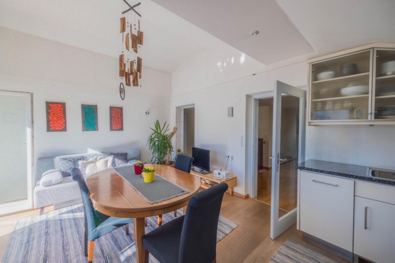 Questo spazioso attico si trova in una posizione tranquilla e occupa l'intero ultimo piano di una casa bifamiliare. La piccola comunità di residenti garantisce un ambiente piacevole con molta privacy e una sensazione di quasi totale indipendenza.