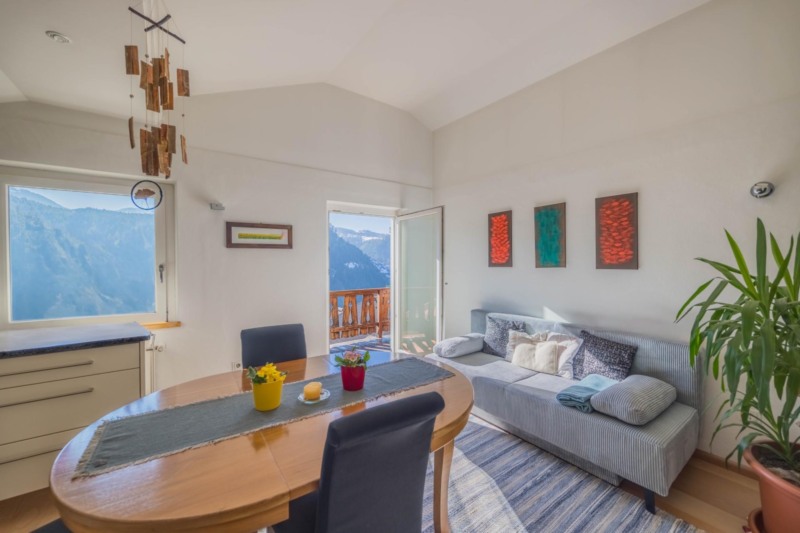 L'accesso avviene tramite una scala esterna autonoma, che rende l'appartamento indipendente dalla seconda unità. Ciò conferisce all'appartamento un carattere particolarmente discreto e privato, che ricorda quasi una casa indipendente.