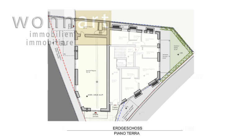 L’edificio è stato recentemente ristrutturato completamente e si presenta in ottime condizioni, moderno e curato. La superficie si distingue per la sua posizione ben visibile e la facile accessibilità. Compresi nel prezzo di affitto anche tre comodi posti auto.