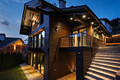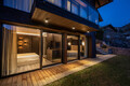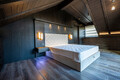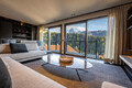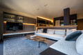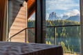 Grazie alle vetrate a tutta altezza e senza telaio, lo spazio abitativo si fonde perfettamente con l'area esterna e permette di inserirsi nel mondo montano circostante.