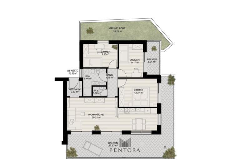 Su oltre 89 m², questa abitazione offre spazio e comfort per famiglie o coppie esigenti. Ambienti luminosi, ampie superfici esterne e una vista panoramica regalano una sensazione di libertà. Costruzione di alta qualità e standard energetico all’avanguardia completano l’offerta.