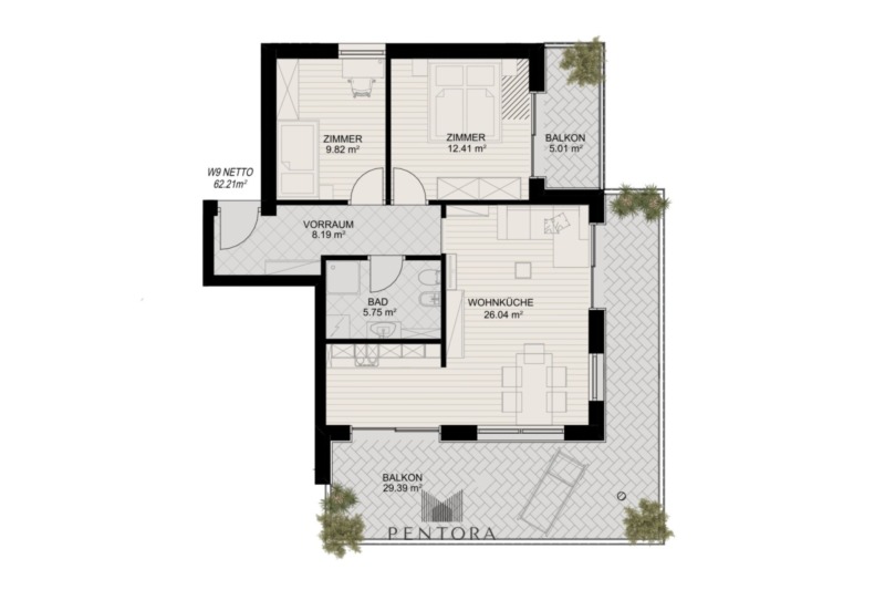 Con ca. 62 m², questo appartamento propone un layout ben studiato e finiture di alta qualità. La terrazza soleggiata offre una splendida vista sulla zona circostante. Un’abitazione ideale per chi cerca modernità e una posizione immersa nella natura.