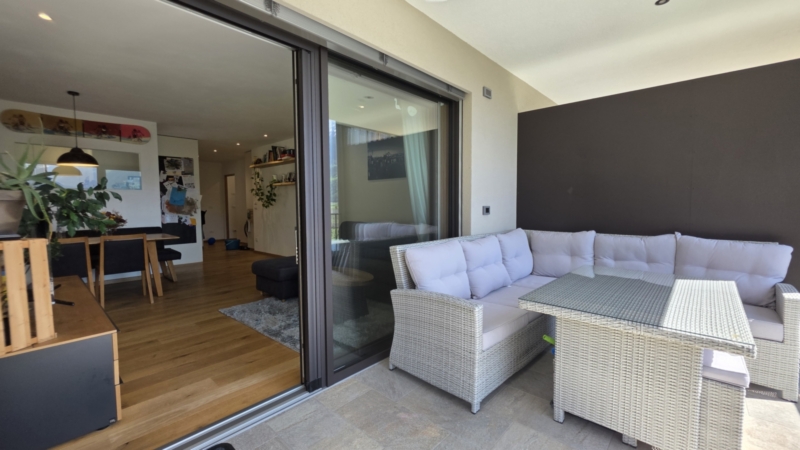 Due confortevoli camere da letto offrono piacevoli spazi di ritiro. Una delle camere dispone di un proprio balcone, ampliando ulteriormente il comfort abitativo privato.