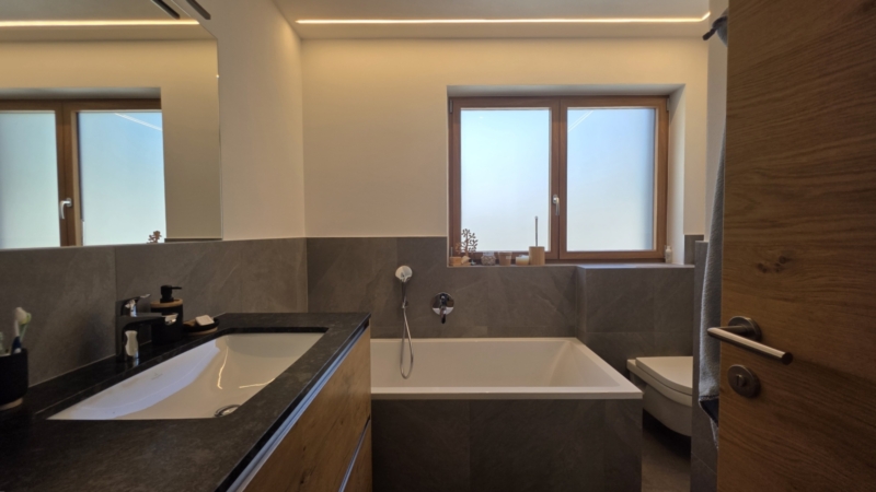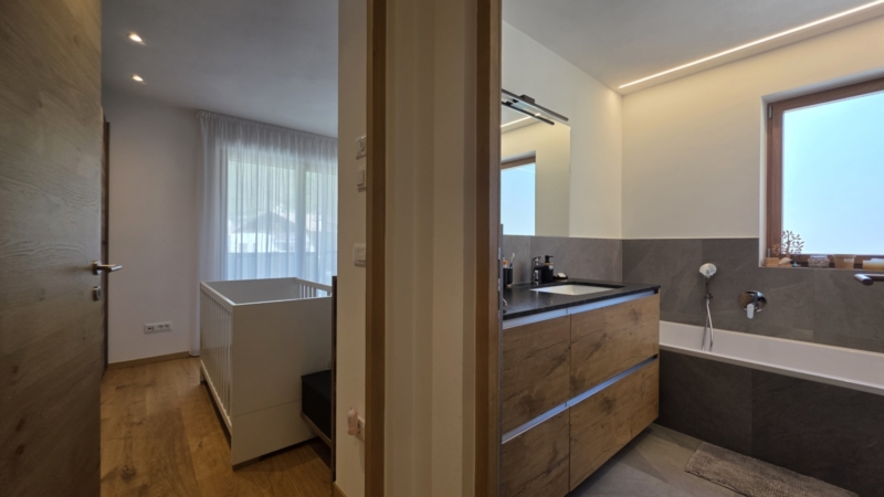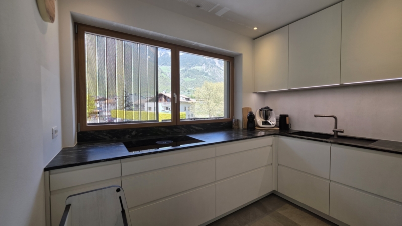 L’immobile colpisce per una distribuzione degli spazi ben studiata. L’ampia zona giorno rappresenta il cuore dell’abitazione e crea un’atmosfera accogliente, ideale sia per momenti di relax sia per un living di rappresentanza. La cucina separata consente una chiara distinzione funzionale e sottolinea il livello qualitativo dell’abitare.