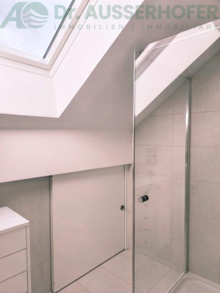 Obergeschoss: Elternschlafzimmer mit direktem Zugang zum Balkon; zwei Kinderzimmer; Badezimmer mit WC. Dachgeschoss: zusätzliches Schlafzimmer, Dusche/WC, Abstellraum und zwei Dachräume.
