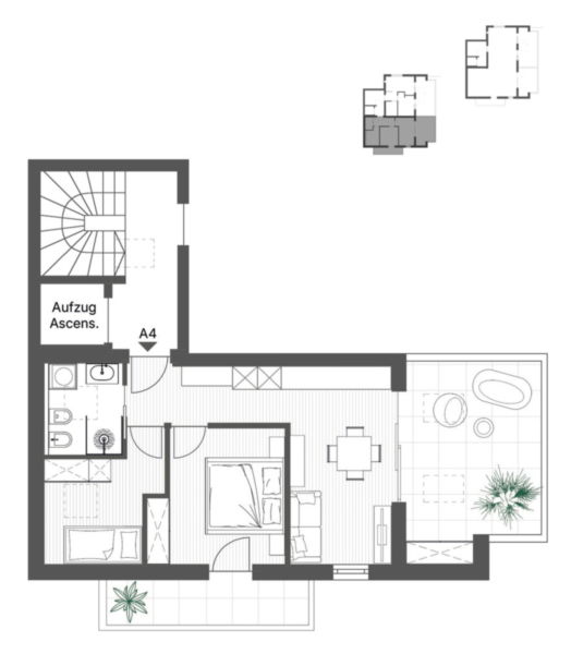 Trilocale con due balconi al 1° piano. L'appartamento si estende su circa 45 metri quadrati di superficie abitabile e offre due camere da letto, un bagno e un'accogliente zona giorno/pranzo con accesso al balcone Sud. L'appartamento è facilmente raggiungibile con l'ascensore, che offre un comodo accesso. Nel seminterrato è presente un vano cantina per un ulteriore spazio di archiviazione. Un posto auto in garage può essere acquistato separatamente per 32.000 euro. L'appartamento è liberamente disponibile e può quindi essere utilizzato anche come casa vacanze.