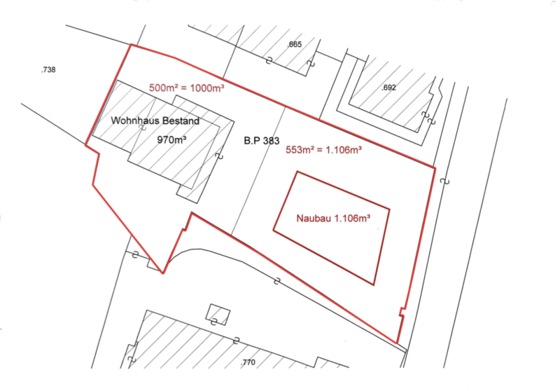 In vendita un terreno edificabile in posizione eccellente ad Anterselva di Sotto. La superficie del terreno è di 1.053 metri quadrati. La cubatura edificabile fuori terra ammonta a 2.106 metri cubi, in base alle attuali direttive in materia di pianificazione territoriale. Inoltre, esiste una cubatura esistente di 907 metri cubi fuori terra e 205 metri cubi interrati. Queste cubature sono state calcolate conformemente alle disposizioni del D.LH. 24/2020, n. 08/2021 e n. 27/2021 (Regolamento edilizio). La base di calcolo si fonda sulle dimensioni ricavate dai piani attualmente disponibili presso l’ufficio tecnico comunale, il catasto e il libro fondiario. Il terreno si trova nella zona residenziale B4 – zona di completamento, offrendo così un’opportunità interessante per investitori o costruttori alla ricerca di una posizione esclusiva. Si applicano le seguenti norme edilizie: