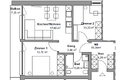 Die Wohnung setzt sich aus einem einladenen Vorraum, einem hellen Wohnbereich mit Kochnische, zwei Schlafzimmern und einer Dusche/WC. Der großzügige Balkon bietet einen freien Ausblick.