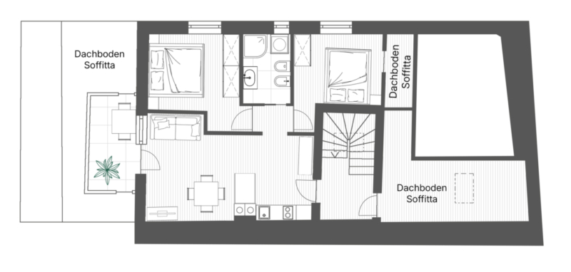 Un punto di forza è il balcone coperto, dove potrete godervi momenti di relax e ammirare il paesaggio pittoresco di San Candido. La proprietà include anche una spaziosa cantina e un sottotetto che offrono ulteriore spazio.
