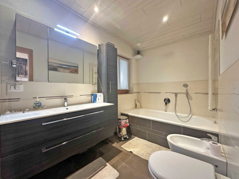 La superficie abitabile netta di circa 80 m² è distribuita al piano terra con cucina, soggiorno, sala da pranzo, WC e ingresso, e al piano superiore con due camere da letto, ripostiglio e bagno. Lo spazio è completato da una cantina e da una sala hobby nel seminterrato. Due balconi, una terrazza e un giardino esposto a sud offrono tanto sole e relax immersi nel verde.