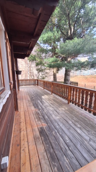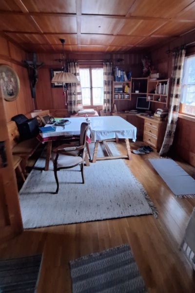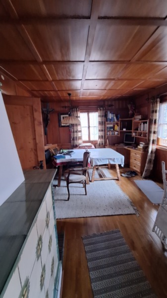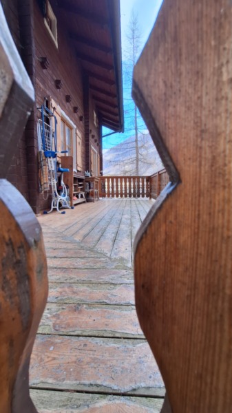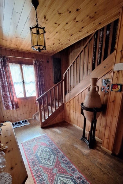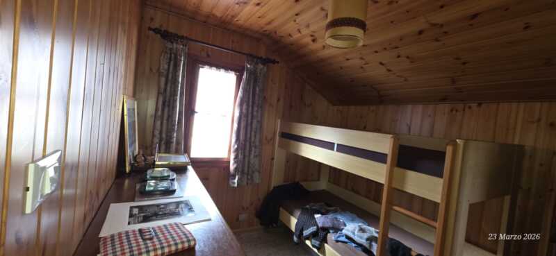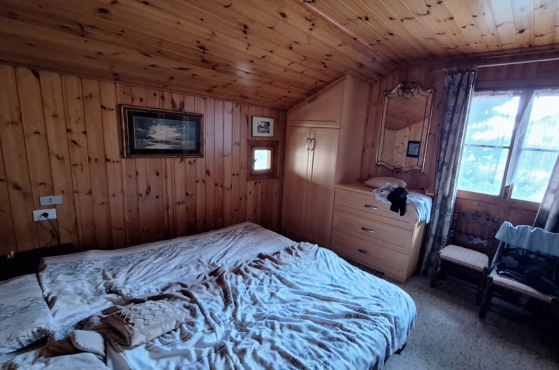 Il piano superiore ospita la zona notte, composta da tre camere da letto, un bagno e un balcone con splendida vista sul paesaggio alpino.