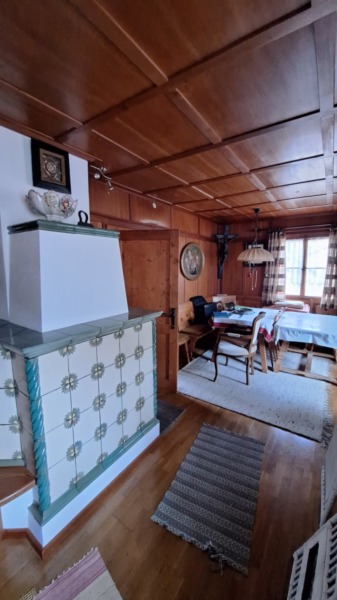 Al piano terra troviamo un ampio e luminoso soggiorno impreziosito da una tradizionale stufa in maiolica Thun, una cucina abitabile, un pratico bagno di servizio e l’ingresso. Da questo livello si accede direttamente alla spaziosa terrazza e al giardino, ideali per momenti di relax all’aria aperta.